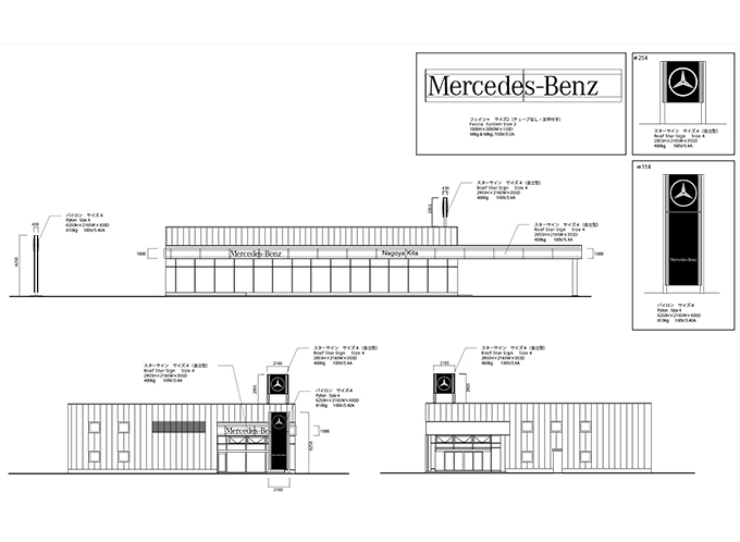 本国のサイン計画やデザインマニュアルを元に、各店の規模やサイズ、立地環境も加味しながら、如何にスムースにストレス無く認知し入店に至るかを検討し設計デザイン。