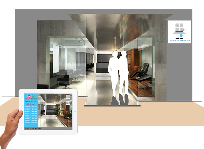 機器と内装をセット商材にした歯科医院開業パックを展示販売するショールーム。同時に内装パターンを再現したバーチャルサイトも立ち上げ、実寸や実物はショールームで、最新情報や仕様検討はウェブで対応出来る形でプロデュース。