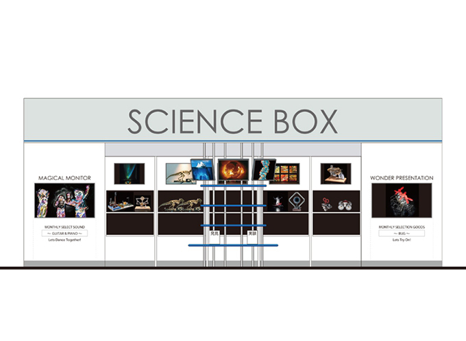 直営店舗展開に際し、親子で楽しめる科学をコンセプトに企画。体験を通した興味から購買に繋がる様に、アナログ教材をVMDポイントに展開。映像コンテンツが多く配信出来る空間デザインで、プロモーションも強化できる構成とした。