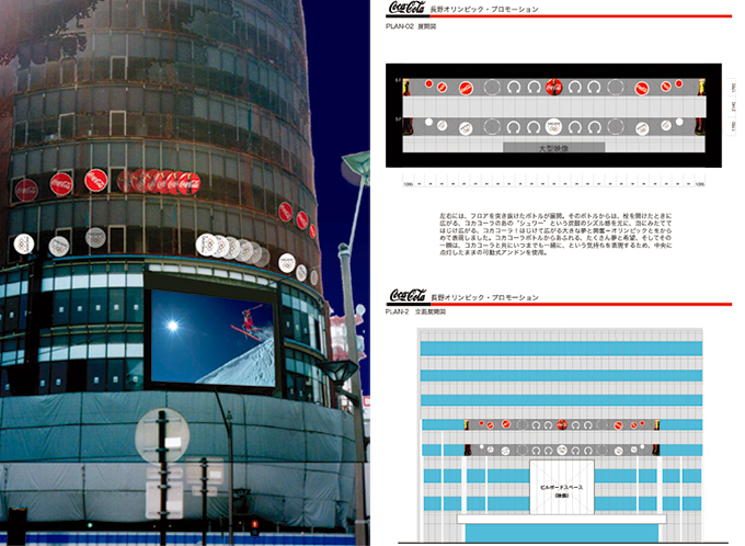 冬季オリンピック会場駅前にて、メイン商品の弾ける泡を、光を制御し動きを作り表現した視覚効果の高いディスプレイビルボード。