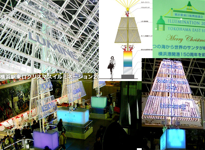 横浜港開港150周年イヤー横浜駅東口イルミネーションは、開港イメージを帆船で表し、船体は中から万華鏡の様にLEDで物語を映した。