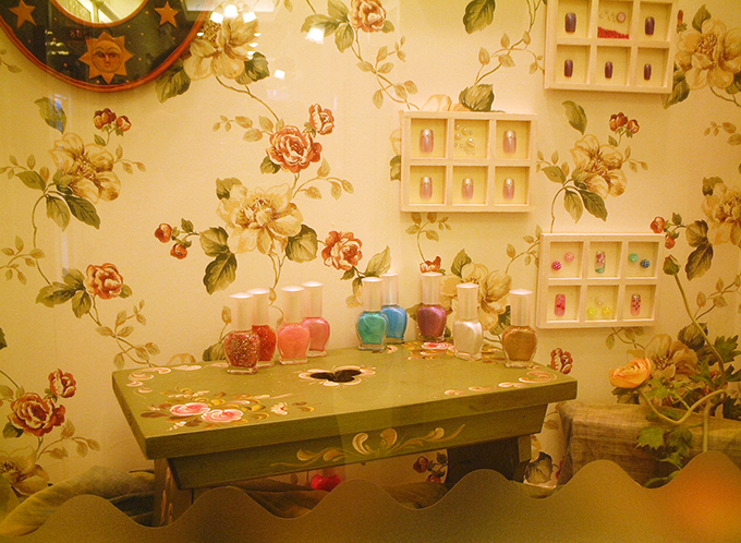 埋め込み看板が収まっていた使われていないスペースを補修し、ネイルサロンらしいかわいい演出をデザインし制作施工。